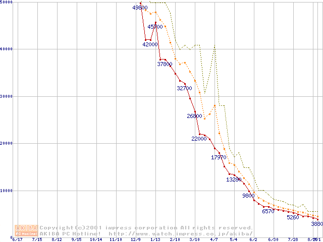 PC2100(DDR266) DDR SDRAM DIMMの最安値推移