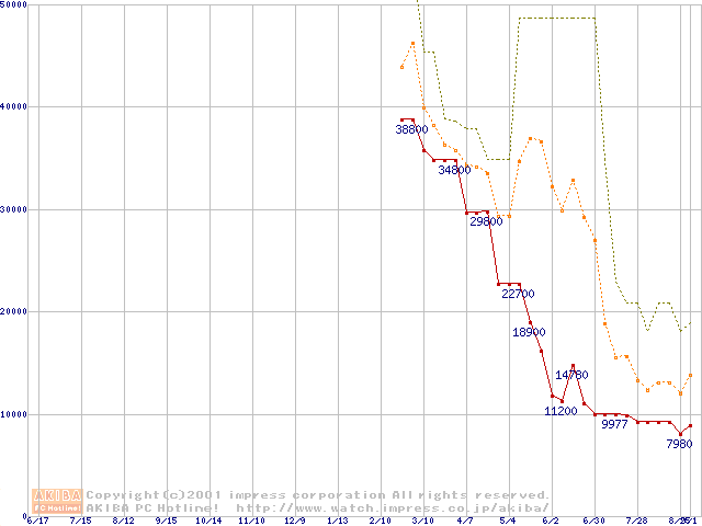 PC2100(DDR266) DDR SDRAM DIMM ECC対応の最安値推移