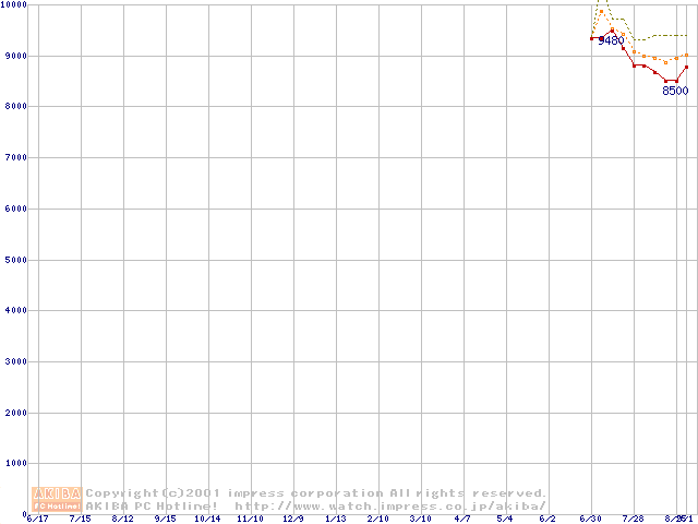 DiamondMax D540X (5,400rpm Ultra ATA/100 40GB/Platter)の最安値推移
