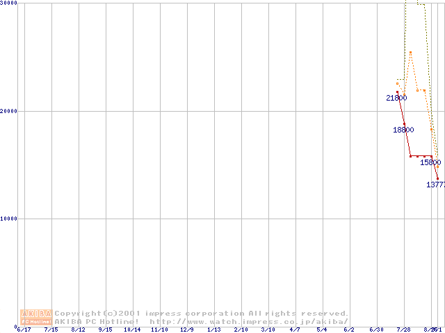 PC133 SDRAM DIMM CasLatency=3 ECC対応 Registeredタイプの最安値推移