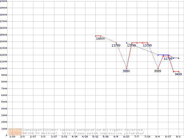 | [↓次グラフ]: | Socket A (Palomino,PGA,FSB 266MHz,L2 256KB)の最安値推移 |