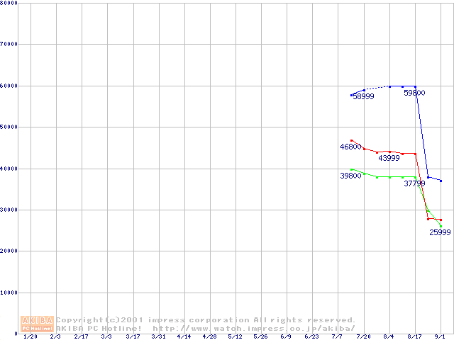 | [↑前グラフ]: | PC600 DRDRAM RIMMの最安値推移 |