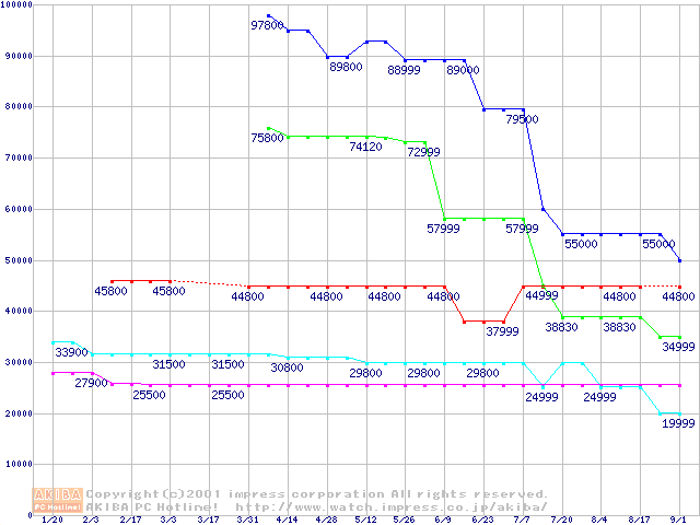 | [↑前グラフ]: | Slot 1 (SECC2,FSB 100MHz,L2 256KB)の最安値推移 |