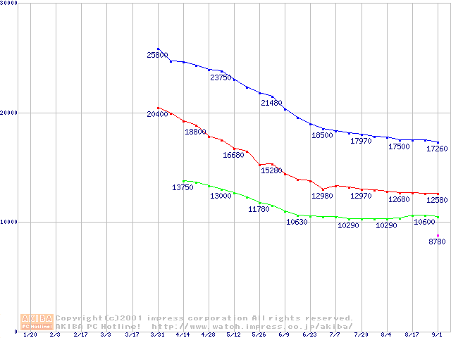 | [↑前グラフ]: | U5 (5,400rpm UltraATA/100 512KB)の最安値推移 |