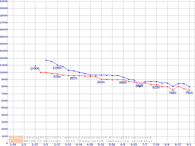 | [↓次グラフ]: | DiamondMax VL 40 (5,400rpm Ultra ATA/100)の最安値推移 |