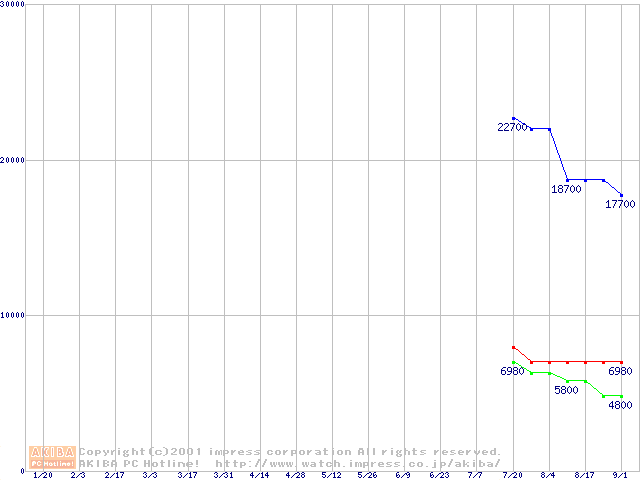 | [↑前グラフ]: | PC100 SDRAM DIMM CasLatency=2 ECC対応の最安値推移 |
