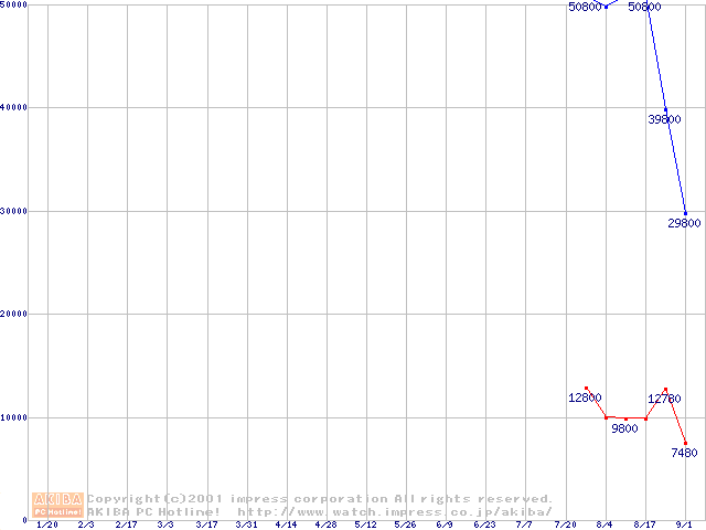 | [↓次グラフ]: | PC800 DRDRAM RIMMの最安値推移 |