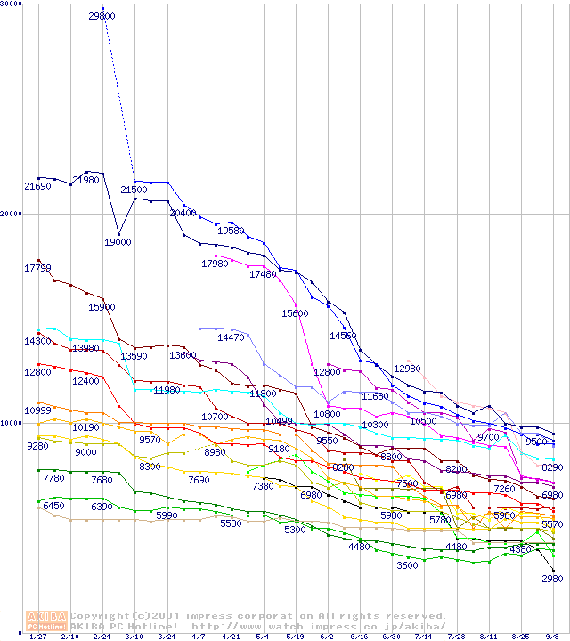 CPU主要製品の最安値推移