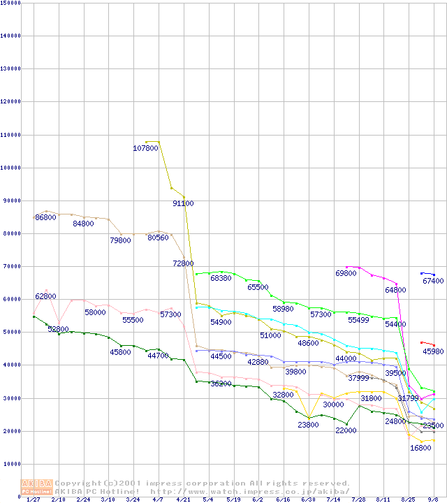 Socket 370・FSB 133MHzの最安値推移