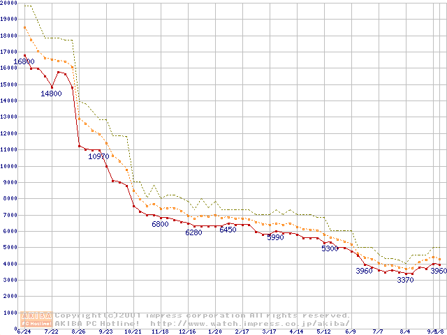 Socket A (PGA,FSB 200MHz,L2 64KB)の最安値推移