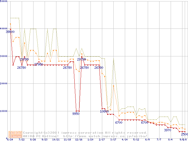 PC800 DRDRAM RIMMの最安値推移