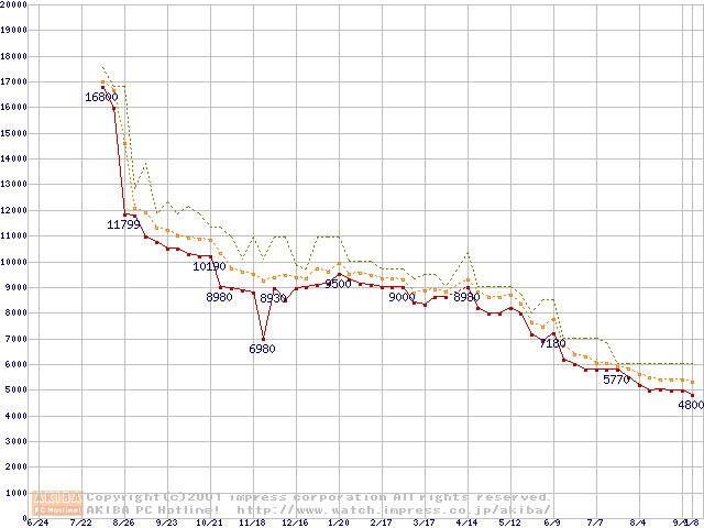 Celeron 633MHz FC-PGA リテールパッケージの価格推移