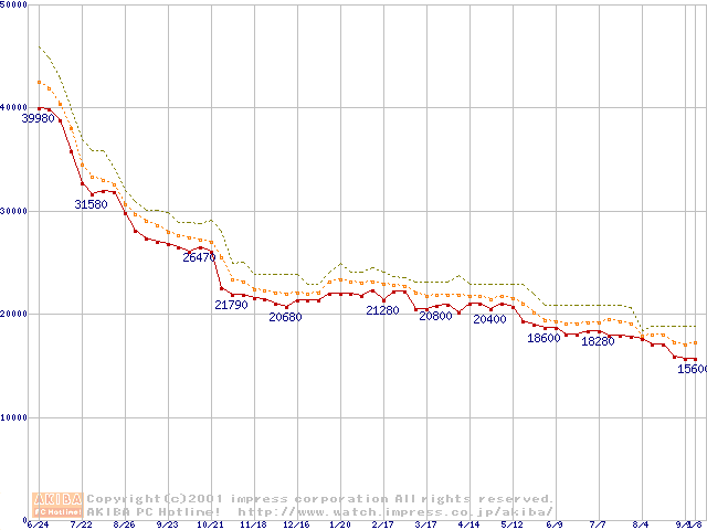 Pentium III 800EBMHz FC-PGA リテールパッケージの価格推移