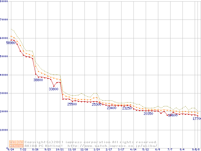 Pentium III 866MHz FC-PGA リテールパッケージの価格推移