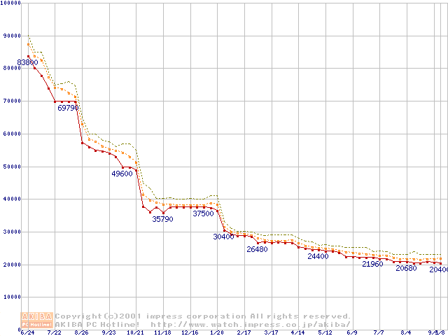 Pentium III 933MHz FC-PGA リテールパッケージの価格推移