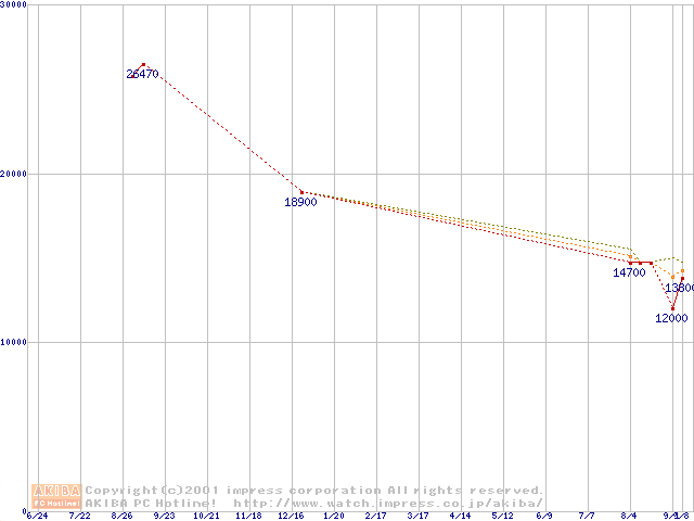 Slot 1 (SECC2,FSB 100MHz,L2 256KB)の最安値推移