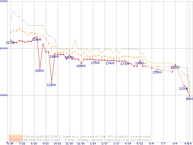 Pentium III 667MHz SECC2 リテールパッケージの価格推移