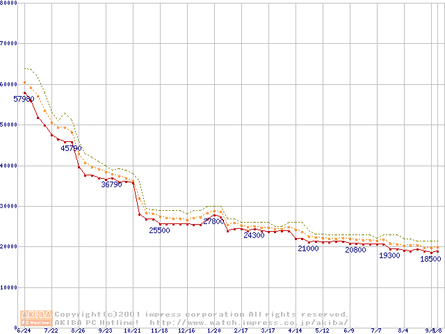 Pentium III 850MHz SECC2 リテールパッケージの価格推移