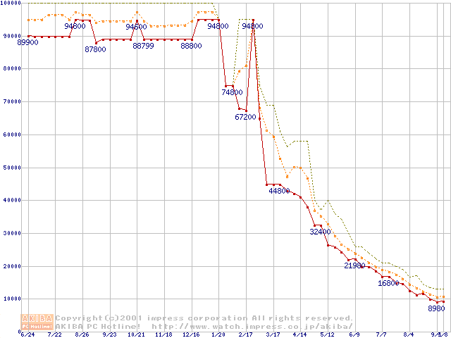 メモリ主要製品(最安値5千円~1万円未満)の最安値推移