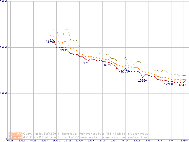 WD Caviar (7,200rpm Ultra ATA/100 20GB/Platter)の最安値推移