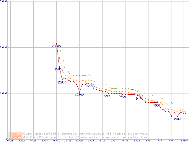 Celeron 733MHz FC-PGA リテールパッケージの価格推移