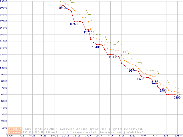Celeron 766MHz FC-PGA リテールパッケージの価格推移