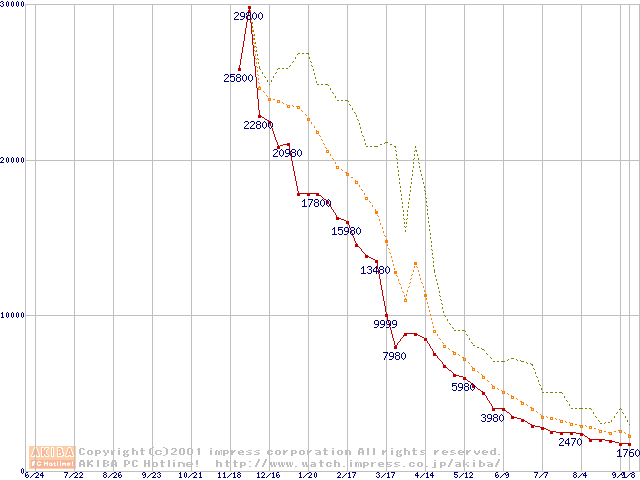 メモリ主要製品の最安値推移