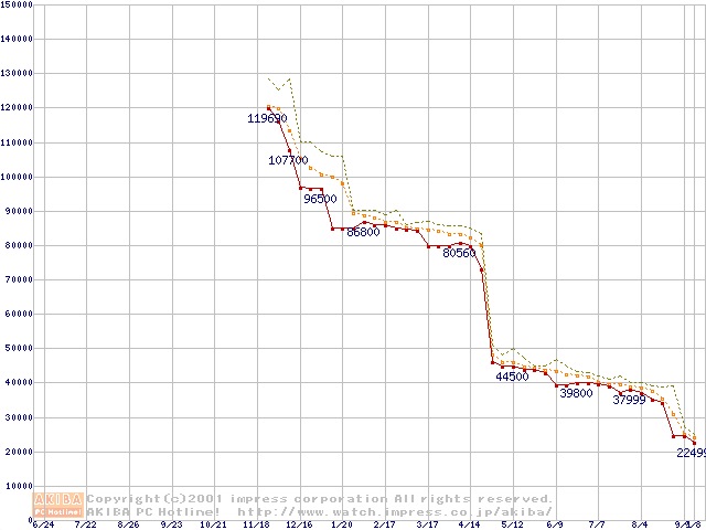 Pentium 4 1.5GHz(423pin)リテールパッケージ(128MB)の価格推移