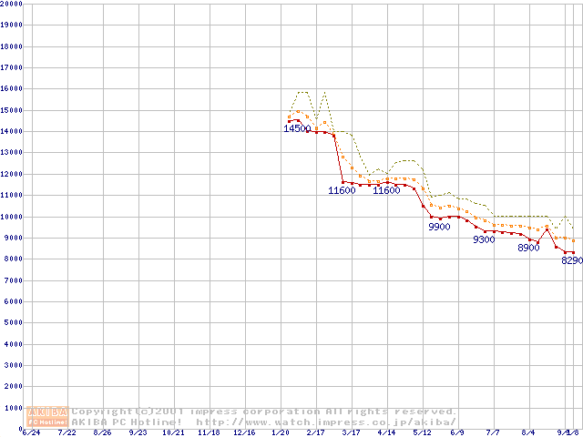 Duron 850MHz リテールパッケージの価格推移
