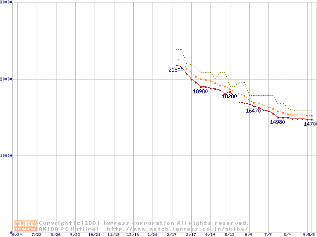 WD Caviar (5,400rpm Ultra ATA/100)の最安値推移