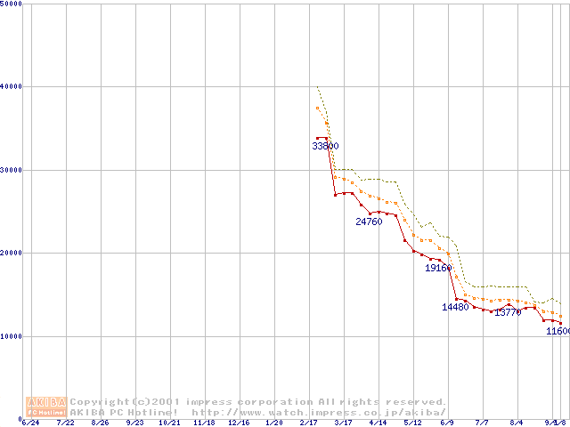 Athlon 1.2GHz(FSB266) (Thunderbird) バルクの価格推移