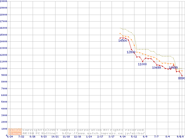 Socket A (PGA,FSB 200MHz,L2 64KB)の最安値推移
