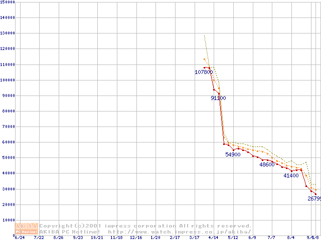 Pentium 4 1.5GHz(423pin)リテールパッケージ(256MB)の価格推移