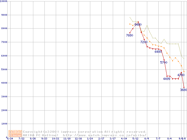 Socket 370 (PGA,FSB 100MHz,L2 64KB)の最安値推移