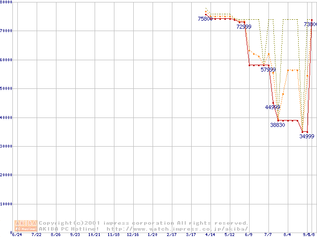 Mobile (Micro-PGA2,FSB 100MHz,L2 256KB)の最安値推移