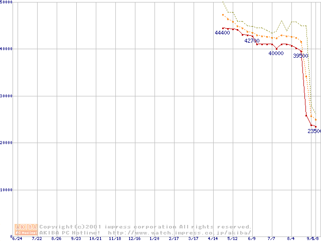 Pentium 4 1.7GHz(423pin)リテールパッケージ(RIMMなし)の価格推移