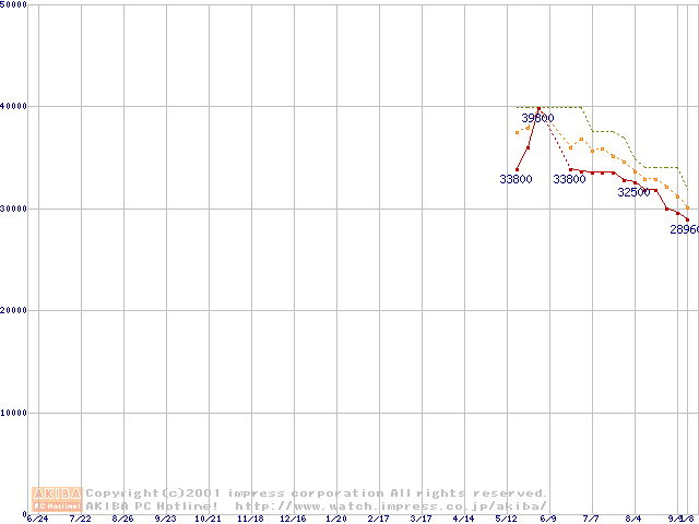 DiamondMax 536DX (5,400rpm Ultra ATA/100 33.3GB/Platter)の最安値推移