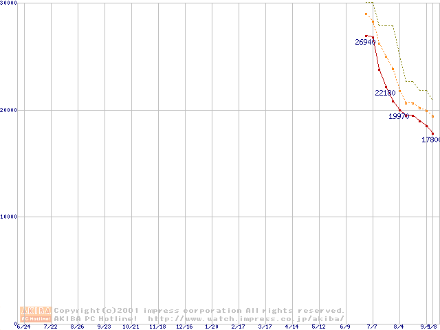 DiamondMax D540X (5,400rpm Ultra ATA/100 40GB/Platter)の最安値推移