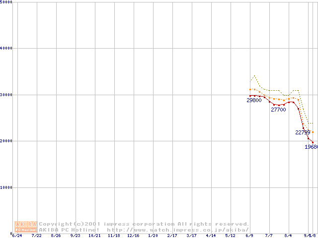 Socket A (Palomino,PGA,FSB 266MHz,L2 256KB)の最安値推移