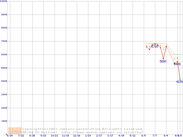 Socket 370 (PGA,FSB 100MHz,L2 64KB)の最安値推移
