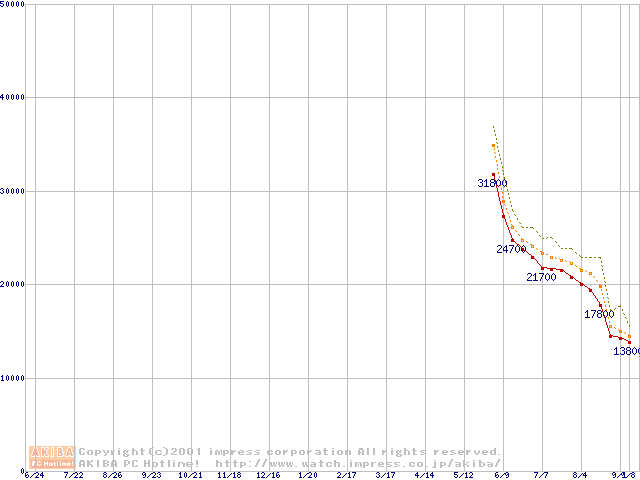 Socket A (Thunderbird,PGA,FSB 266MHz,L2 256KB)の最安値推移