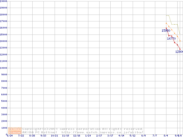 HDD主要製品(最安値1万円~1万5千円未満)の最安値推移