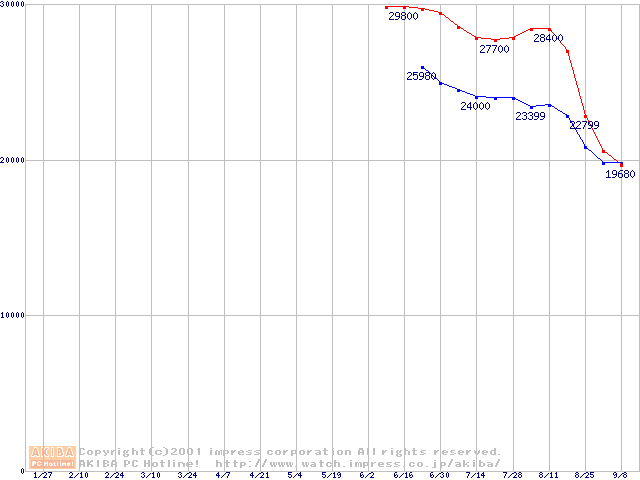 | [↓次グラフ]: | Socket A (Thunderbird,PGA,FSB 266MHz,L2 256KB)の最安値推移 |