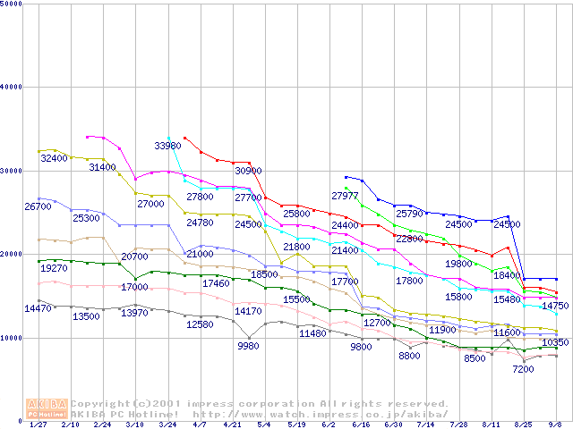 | [↑前グラフ]: | Socket A (Thunderbird,PGA,FSB 266MHz,L2 256KB)の最安値推移 |
