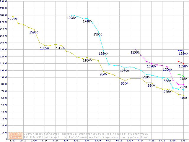 | [↓次グラフ]: | Socket 370 (FC-PGA,FSB 66MHz,L2 128KB)の最安値推移 |