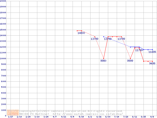 | [↓次グラフ]: | Socket A (Palomino,PGA,FSB 266MHz,L2 256KB)の最安値推移 |