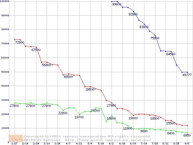 | [↑前グラフ]: | PC800 DRDRAM RIMMの最安値推移 |