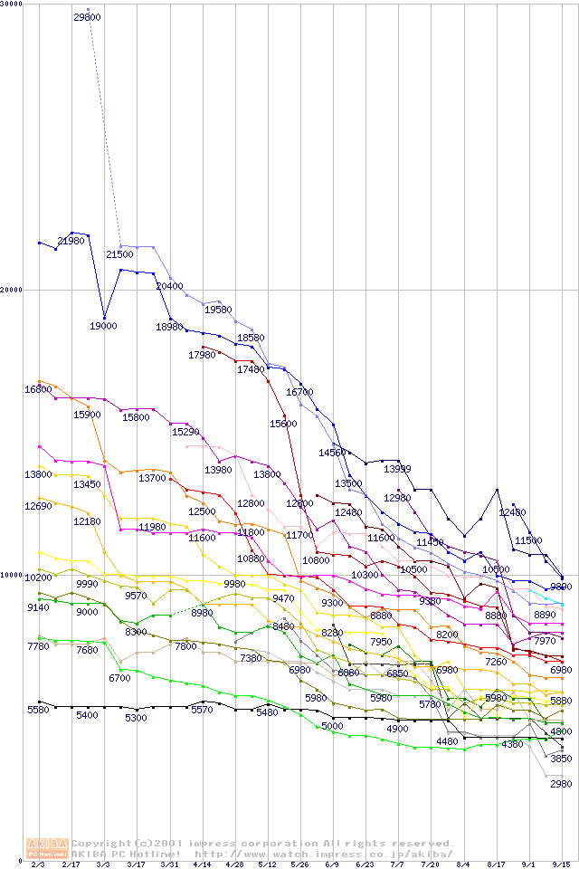 CPU主要製品の最安値推移