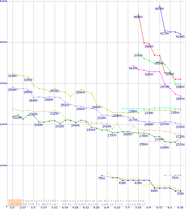 Socket 370・FSB 133MHzの最安値推移