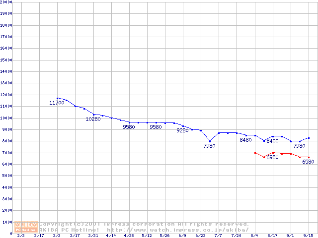 | [↑前グラフ]: | HDD主要製品の最安値推移 |